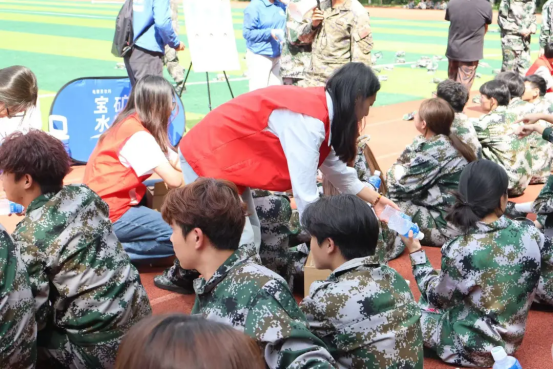 烈日下,他们的脚步从未停下,一次次从补给站出发,又一次次穿过滚烫的操场,只为把那瓶冰镇的宝矿力电解质水,稳稳地送到每一位同学的手中。