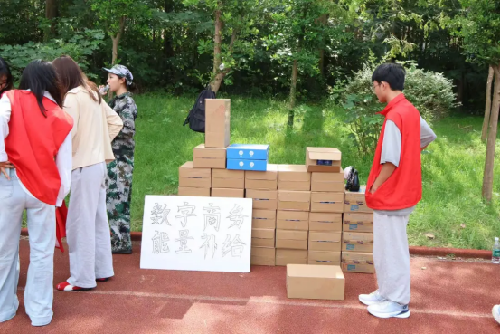 在整齐的队列旁,有这样一群人,他们不是参训的新生,却同样顶着烈日;他们不是教官,却默默守护着每一位同学——数字商务学院青年志愿者。