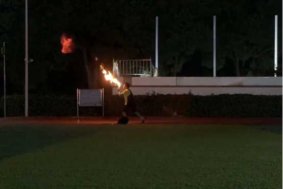 如果说蒙古舞是温柔的点燃,那喷火表演便是直抵人心的震撼。当他走上舞台,全场瞬间安静下来,只剩晚风轻拂的声音。随着一声吆喝,一团炽热的火焰骤然从他口中喷涌而出,在夜空下划出耀眼的弧线,紧接着又是接连几次喷火,火光映亮了每一张写满惊叹的脸庞。