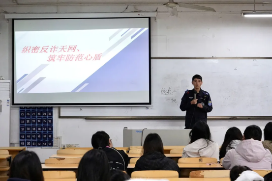 随后,派出所民警给大家播放了反诈视频,同学们都目不转睛的在观看,视频中几个非常常见的诈骗手段和防诈技巧让同学们切实认识到诈骗的危害,提高自我保护意识刻不容缓。