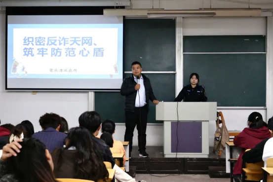 为切实提升我院师生防范电信网络诈骗的意识和能力,10月23日,无锡市滨湖分局鼋头渚派出所民警联合数字商务学院师生,开展“织密反诈天网,筑牢防范心盾”专题活动。活动现场座无虚席,大家积极参与互动,反响热烈。
