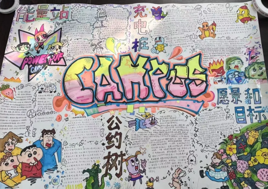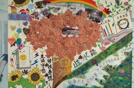 为了给2025级新生班级搭建一个可视化的“心理沟通桥梁”,10月下旬,数字商务学院2025级新生齐心共绘班级的心灵版图。班级心灵版图共分四个板块:“能量站”、“充电桩”、“公约树”以及”集体愿景与目标“,这让抽象的心理需求、情绪状态变得清晰可寻,既帮助了个体看见自己,也为同学间的互助提供了平台。