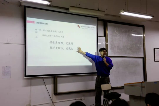 随后,韦帅老师问道:“娱乐明星,是榜样还是偶像?”并进行了深入辨析。他指出,榜样更偏向“理想”,他们代表着一种崇高的、值得追随的精神境界,其力量是支撑我们行稳致远的“精神钙质"。而偶像则更贴近“现实”,是我们欣赏与喜爱的对象。一个真正的优质明星,往往能将“榜样的素质”内化于心,将“偶像的气质”外化于形,实现理想与现实的统一。