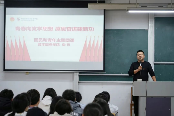 为奋进新征程、建功新时代,着力加强对广大青年的政治引领,数字商务学院于2025年10月31日在博学楼D107教室组织开展了第三次主题团课。本节团课由数字商务学院党总支副书记李可主讲,主题为“青春向党学思想,感恩奋进建新功”,全体入团积极分子参加。