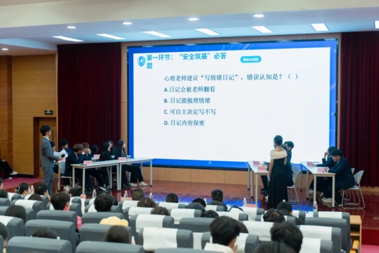 赛前,各参赛队伍依次登台亮相,展现团队风采。本次安全知识竞赛共设三个环节:第一环节“安全筑基”,各组按序沉稳作答,夯实基础;第二环节“安全冲刺”,选手通过小程序激烈抢答,分秒必争;第三环节“安全博弈”,依据赛前抽签顺序,各组自主选择不同难度与分值的题目,经内部讨论后谨慎作答,策略与智慧并存。